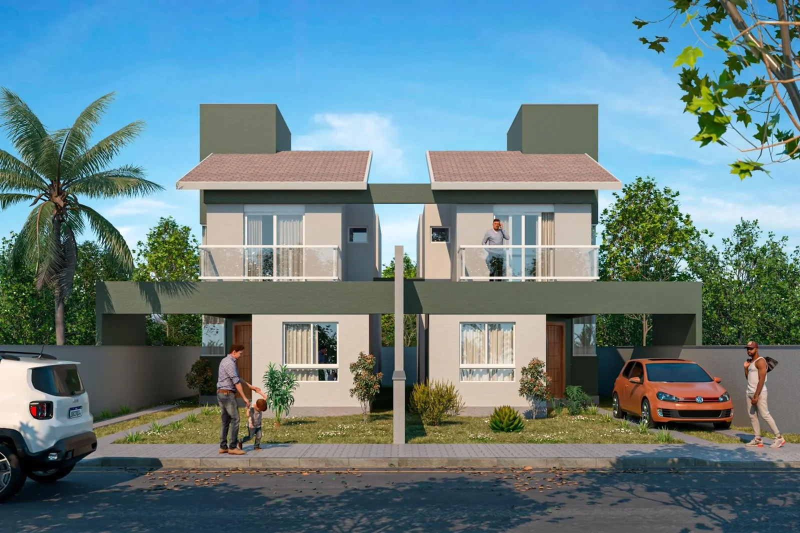O Residencial Lua Cheia entrega casas generosas com 162m² de área construída, 3 suítes, terreno privativo de 243m² e acabamentos de alto padrão — escada pré-moldada com corrimão em aço escovado, porcelanato e bancadas em granito.